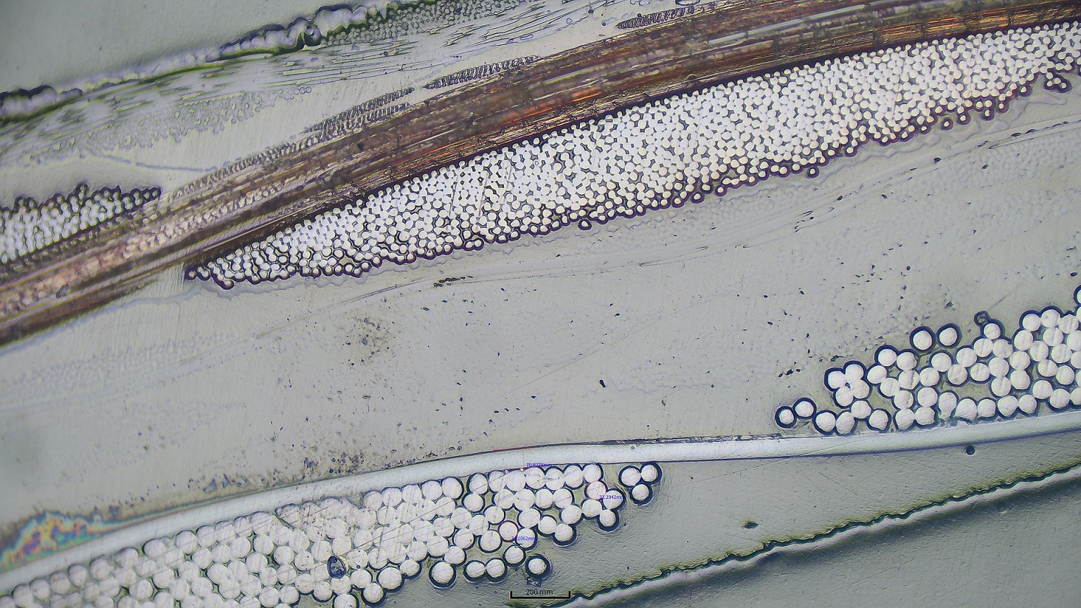 LED燈引腳瑕疵的檢測,采用是高端研究級偏光金相顯微鏡及最新軟...